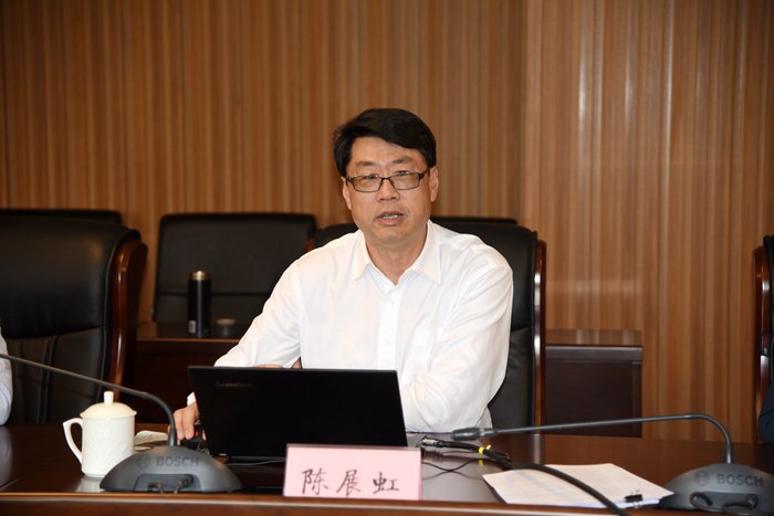 答辩会上,陈展虹介绍了我校终身教育、轨道交通两个VR/AR职业教育实训基地项目的方案规划和建设内容,并从专业改造、师资建设、场地预留、资金筹集等方面回答了专家的问询。