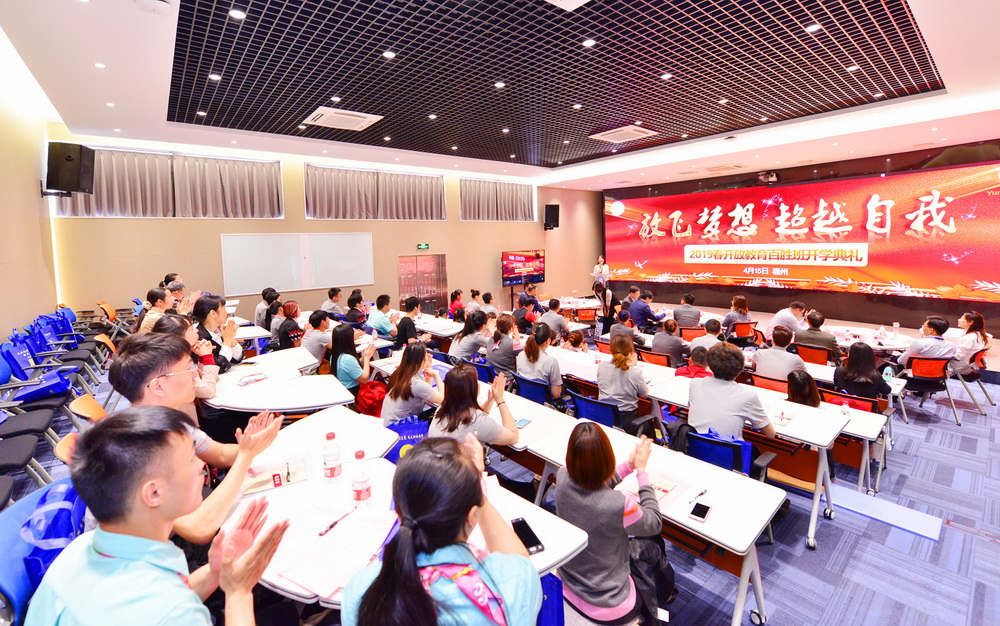 新的学期承载新的梦想,开启新的征程。4月15日下午,我校与百胜餐饮(福州)有限公司在学校智慧教室隆重举行2019年春季开放教育百胜班开学典礼。副校长陈展虹、百胜餐饮(福州)有限公司肯德基营运经理黄铸出席典礼并致辞。公共管理学院副院长李瑞中主持典礼。开放教育百胜班新老生代表,百胜餐饮(福州)有限公司、学校文经学院、公共管理学院相关人员等70多人参加了典礼。