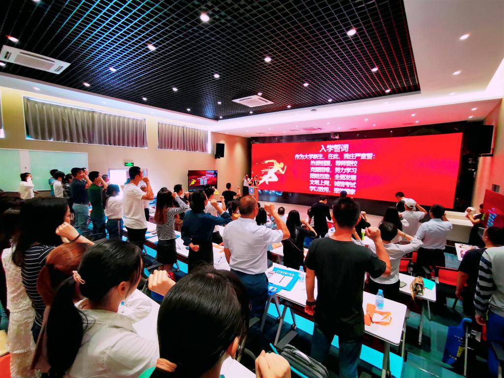 围绕“不忘初心、牢记使命”主题,典礼上举行了齐唱国歌、校领导与教授“组团”上“开学第一课”、颁发学生证、佩戴校徽、新生入学宣誓等一系列活动,为新生们呈现了一堂“爱家、爱国、立德、立志”的思政大课。