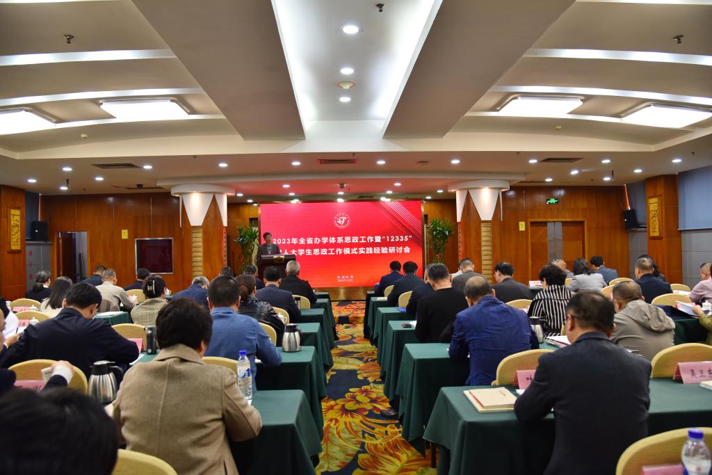 三是守正创新强担当,继续做好2024年全省办学体系的思想政治工作。全省办学体系要围绕立德树人的目标,努力构建学校思想政治工作“大思政”格局,推动思政工作提质增效,着力培养担当民族复兴大任的时代新人。一要强化政治引领,坚持不懈用习近平新时代中国特色社会主义思想凝心铸魂;二要突出守正创新,加强理论与实践的统一,遵循内容与方法的统一,坚持育才与育德的统一,推动思政课内涵式发展;三要筑牢育人主阵地,加快建设“课程思政教学研究分中心”,支持和培育“课程思政教学名师工作室”,继续推动课程思政示范项目建设,推进课程思政高质量建设;四要强化全员育人,持续加强教师队伍、班主任队伍、学生骨干队伍建设,建强思政工作队伍;五要持续探索构建党委统一领导、职能部门组织协调、基层办学单位分级管理、责任部门共同参与、办学体系齐抓共管的成人大学生思政工作格局,深入落实落细“12335”成人大学生思政工作模式,形成思政工作合力。