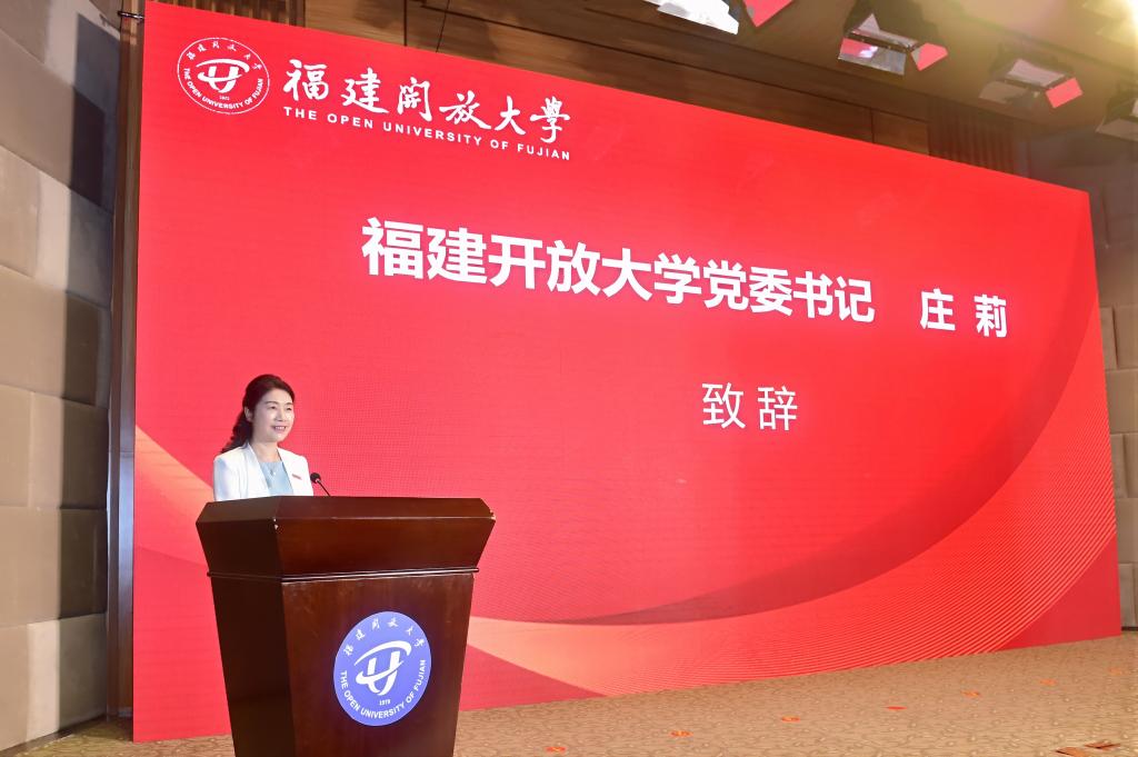 庄莉代表学校致辞,她从实现广度与深度双拓展、推动学历与技能双提升、形成辐射与示范双效应等方面总结了我省农民工“求学圆梦行动”取得的良好成效。她指出,产业工人队伍建设改革是党和国家一项具有战略性、全局性的重大决策部署,学校将秉持“办出福建特色、彰显开大优势、打造精品项目”的理念,持续开展好“求学圆梦行动”,为产业工人提供更多优质的教育资源,努力推动该项目成为我省产业工人学历技能提升的育人阵地、成才高地和示范基地。她对58名首届劳模本科班毕业生们表示热烈的祝贺,勉励学员们始终葆有劳模精神、劳动精神和工匠精神,把所学知识转化为现实生产力,争做爱岗敬业的示范者、艰苦奋斗的践行者、精益求精的引领者;始终秉持创新意识、进取意识和担当意识,在各自领域里敢为人先、勇攀高峰,为推进中国式现代化福建实践作出新的更大贡献。