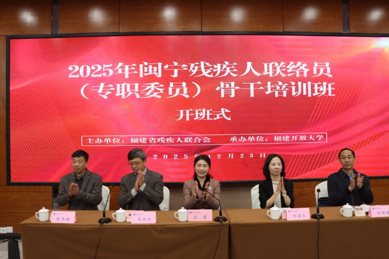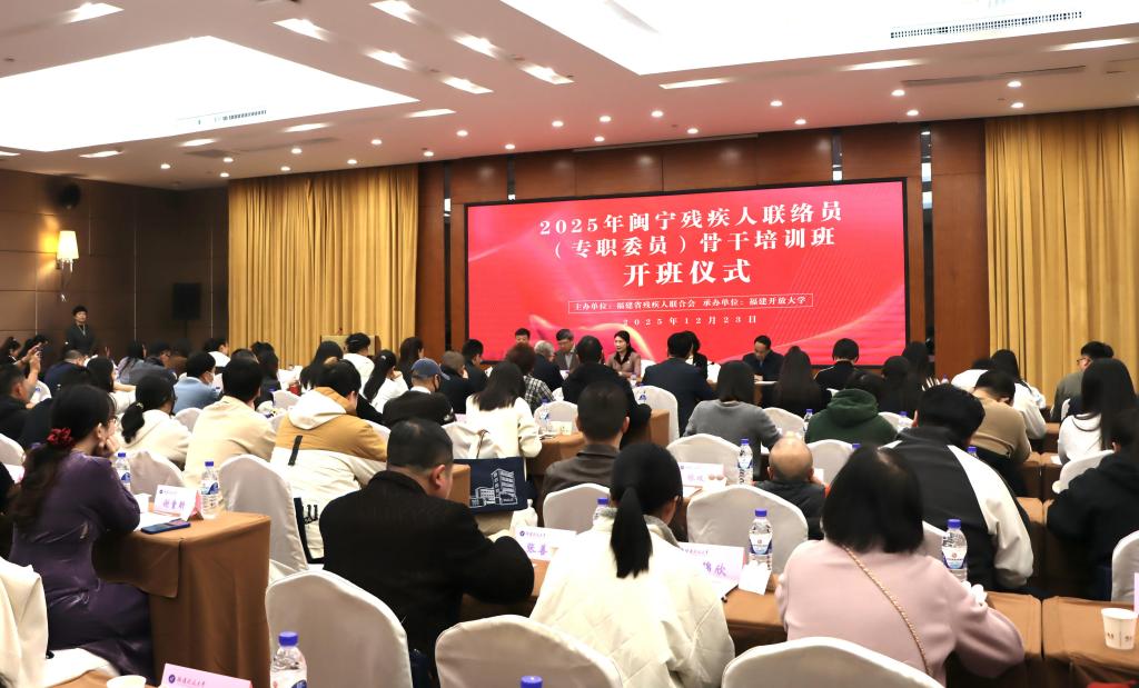 12月23日,由我校承办的2025年闽宁残疾人联络员(专职委员)骨干培训班开班仪式在闽江饭店举行。学校党委书记庄莉、党委副书记马成斌,福建省残疾人联合会党组成员、副理事长郑海生出席仪式。来自福建、宁夏两省区的128名残疾人联络员骨干参加培训。