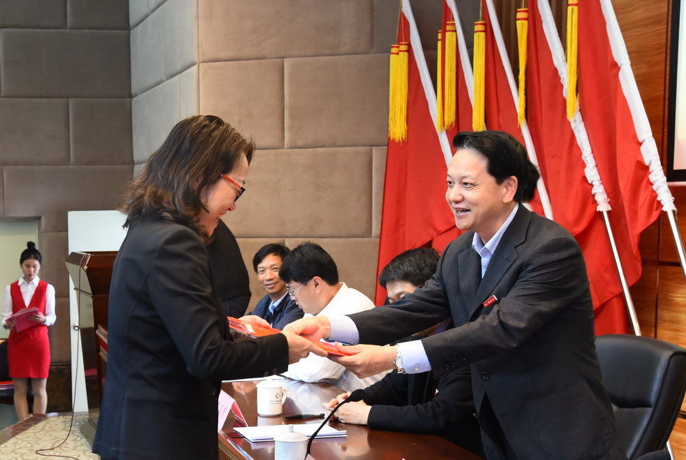 陈兴炎向分管部门下达2018年全面从严治党责任书和综治安全稳定目标管理责任书