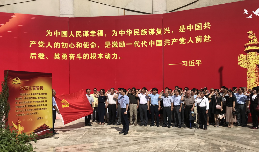 参观前,在“不忘初心 牢记使命”主题教育广场大型雕塑“奋斗”前,现场全体党员同志整齐列队,在陈兴炎的带领下,面对鲜红党旗,高举右手,庄严宣誓,重温自己对党忠诚的铮铮誓言,深切表达了为党和国家事业奋斗终身的决心,再一次接受了心灵的洗礼。