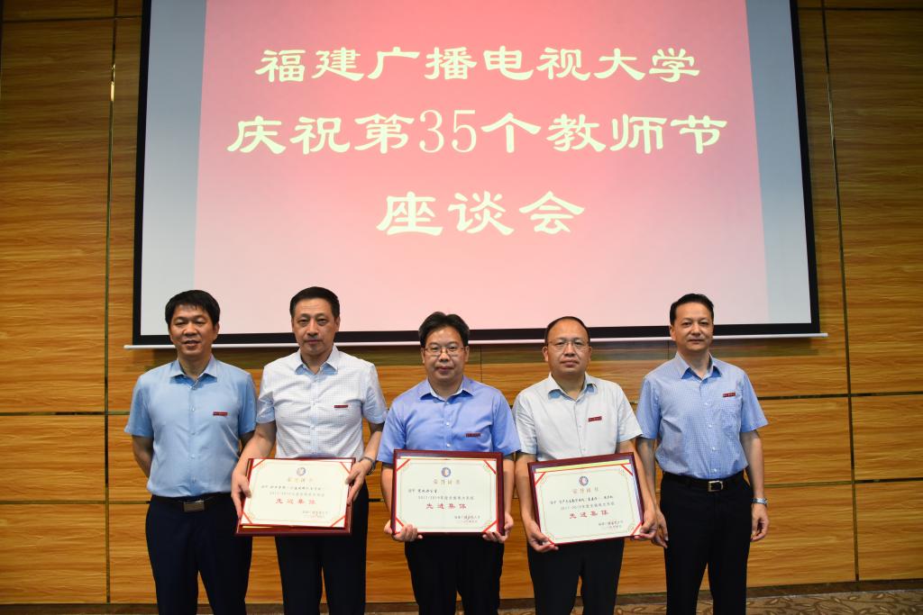 教师们进行了座谈和交流。“从教满30年教师”李燕芳,“国家开放大学优秀教师”汪继红,“全省电大系统先进集体”资产与后勤管理处处长林永周,“全省电大系统优秀教师”陈忠琼,“国家开放大学优秀青年教师培养对象”曾春妹,新教师王舒云等分享了各自的经历、体会和感想。