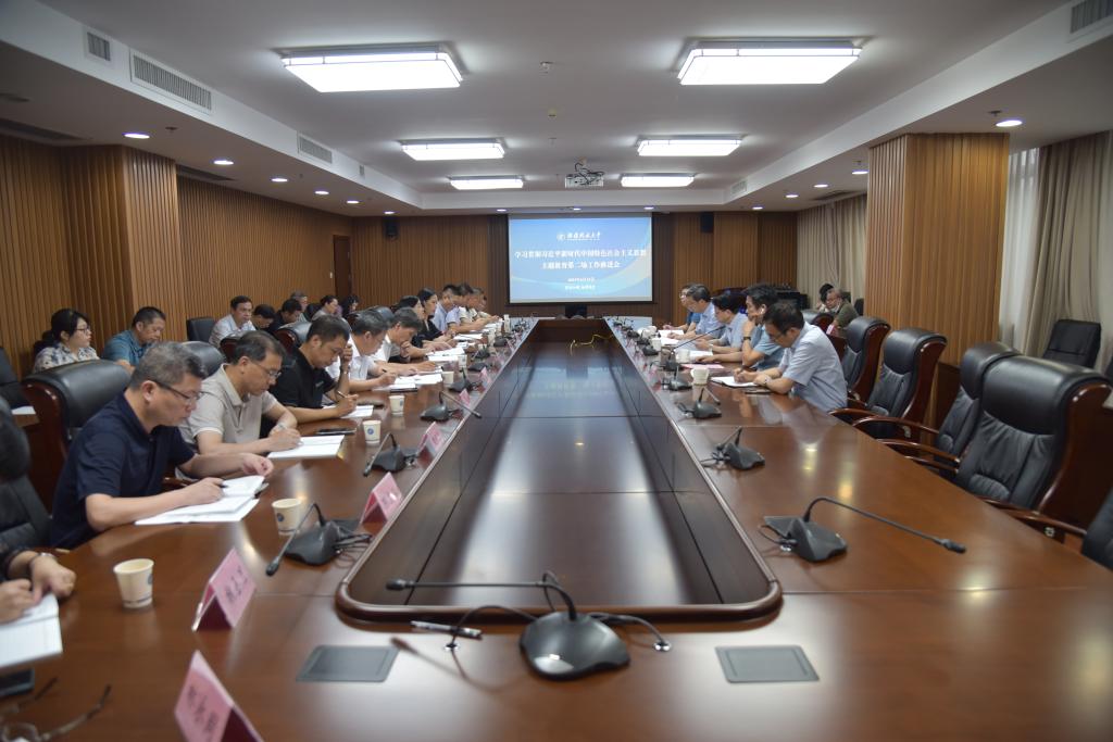 马成斌代表学校主题教育领导小组办公室通报了学校主题教育开展以来取得的进展,分析了工作中存在的不足,并对下一步工作作出部署。他指出,学校主题教育启动以来,校党委以高标准高质量抓好主题教育各项工作,力求在以学铸魂、以学增智、以学正风、以学促干方面取得成效:一是持续深化理论武装,做到四个“突出”,确保学习成效;二是持续抓好调查研究,把准调研方向,注重调研实效;三是持续推动整改整治,找实具体问题,抓实专项整治;四是持续做好新闻宣传,打造校内宣传阵地,推进外媒宣传报道。他强调,要进一步加大整改力度,切实取得成效,一是要高质量完成学习任务;二是要按时完成专题党课;三是要做好典型案例上报工作;四是要做好部门网页更新,突出主题教育重点;五是要按时提交调研报告与成果;六是要统筹落实好读书班的学习进度与质量;七是要利用好校史专题馆特色资源,在端午节前组织教职工参观学习;八是要牢牢把握中央及省委工作要求,克服形式主义,减轻基层负担,杜绝层层加码。