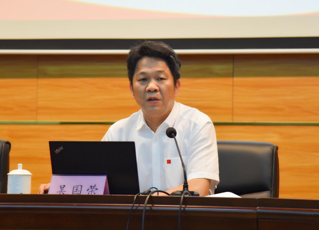 吴国荣强调,全校教工要自觉服务党的中心任务,融入中国式现代化建设大局,为中国式现代化建设做出学校应有贡献。广大党员干部要在贯彻落实习近平总书记的发展观上作表率,走前头。一要牵好政治能力“牛鼻子”,做有理想讲原则的新时代好干部。二要提升思维能力“总钥匙”,做有智慧的新时代好干部。三要练好实践能力“真本领”,做肯奋斗的新时代好干部。最后,吴国荣提出三点见解同与会同志共勉,讲好开大故事,发出开大声音;把多变合作的轮子转起来;真正构建以互联网为支撑的开放大学。