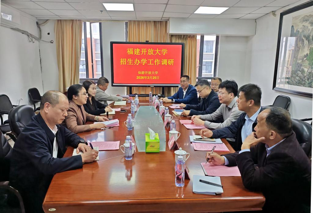 党委副书记、校长蔡晃赴莆田开放大学、仙游开放大学开展调研。调研期间,蔡晃实地察看学校办学环境,先后与两校教职工座谈交流。座谈会上,两校围绕招生办学、教学科研、师资队伍、终身教育等作了详细汇报。蔡晃对莆田开放大学、仙游开放大学近年来取得的发展成果给予充分肯定。他强调,莆田地区开放大学要主动融入发展大局、聚焦主责主业,扎实推进招生办学工作,着力打造办学特色品牌;要深化多方协同联动,促进资源互通、优势互补,推动各项工作高效运转、整体提升。