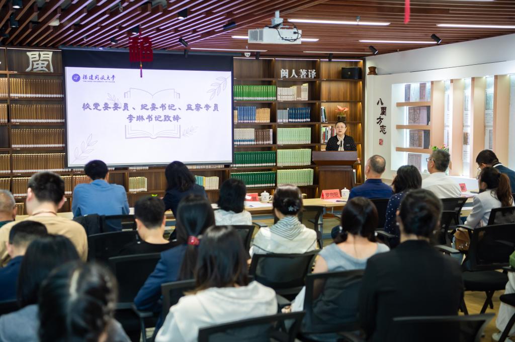 人间四月暖,书香润初心。在第31个“世界读书日”来临之际,4月21日上午,由校纪委(监察专员办)主办,文经学院、马克思主义学院承办的“朗廉润心 书香传廉”廉洁主题朗读活动在福建省图书馆举办。校党委委员、纪委书记、监察专员李琳出席活动,纪检监察室、文经学院、马克思主义学院全体教职工及福建省图书馆相关人员共同参与。