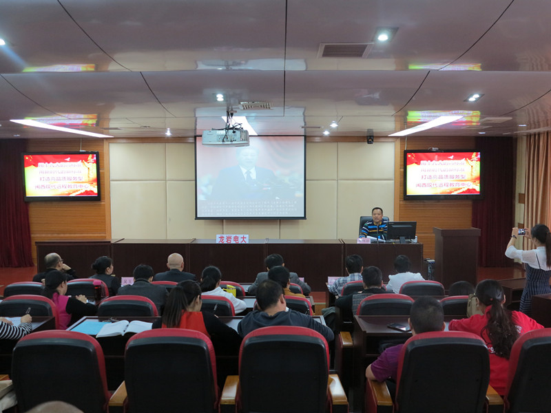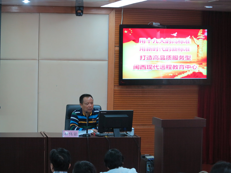 11月7日上午,龙岩电大党支部书记林伟能结合学习宣传贯彻“党的十九大精神”要求,给全体教职工上了一堂主题为《用十九大的高标准 用新时代的新标准 打造高品质服务型闽西现代远程教育中心》专题党课。