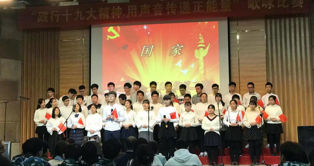歌咏比赛以铭记红色历史、歌唱美好新生活为主旋律,在比赛中10支参赛队身着统一服装,以饱满的热情、良好的精神风貌先后登台演唱《国家》、《歌唱祖国》、《强军战歌》、《红旗飘飘》等一首首耳熟能详、豪迈雄壮的经典歌曲,运用了齐唱、领唱、轮唱、混合舞蹈等多种演唱技巧,充分展示了青年学生不懈努力和不断拼搏的精神。