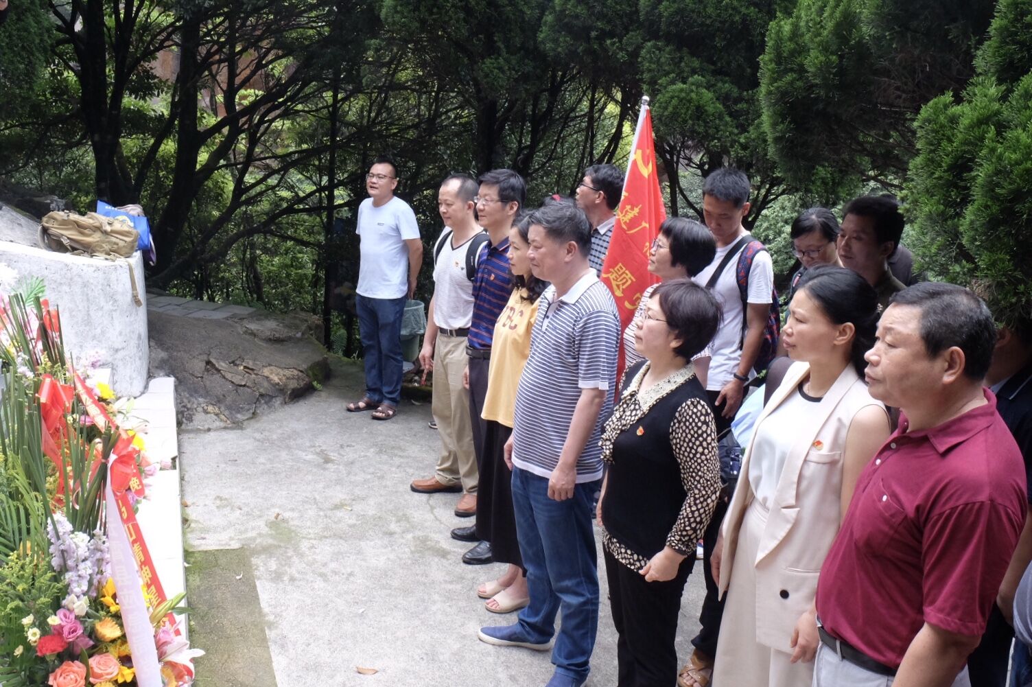 为庆祝中华人民共和国成立70周年,大力弘扬以爱国主义为核心的伟大民族精神,5月17日,漳州电大组织行政党支部、教师党支部、离退休党支部党员代表等24人,前往红色圣地云霄县乌山开展了主题党日活动,接受党性和革命传统教育。党委书记、校长李然等校领导以普通党员身份参加了活动。