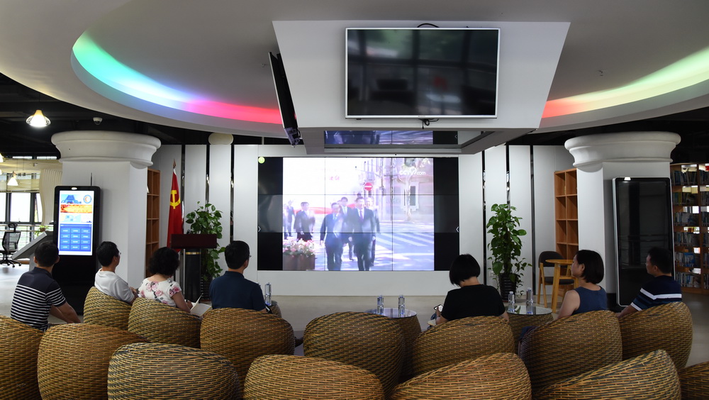 支部全体党员首先观看了微视频《不忘初心、牢记使命、永远奋斗》。在片中,习近平总书记带领新一届中央政治局常委专程前往上海和浙江嘉兴,瞻仰中共一大会址和嘉兴南湖红船,回顾建党历史,重温入党誓词,表现了以习近平同志为核心的党中央带领全党、全国各族人民在新时代中国特色社会主义新征程,不忘初心、牢记使命,永远奋斗的雄心壮志。