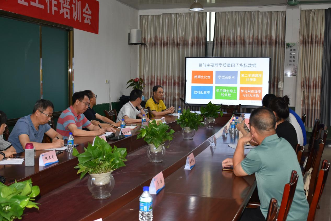 会议就教学、招生工作进行了培训和研讨。教学科研处主任吴继泉根据国开和省开文件精神,以“规范教学教务管理,有效提升教学质量因子”为题,结合课程思政和学生思政工作,对日常性、过程性和集中实践性等教学管理工作,以及考务、学籍和办证等教务管理工作等做出具体布置和要求。招生办公室副主任杜璇传达了国家开放大学2023年秋季招生会议精神,总结全市办学体系春季招生工作情况,就规范招生稳中求进、精准服务项目拓展、体系联动做强系统筹方面部署秋季招生工作,提出进一步做好全市开放大学2023年秋季的招生工作思路,并组织交流讨论。