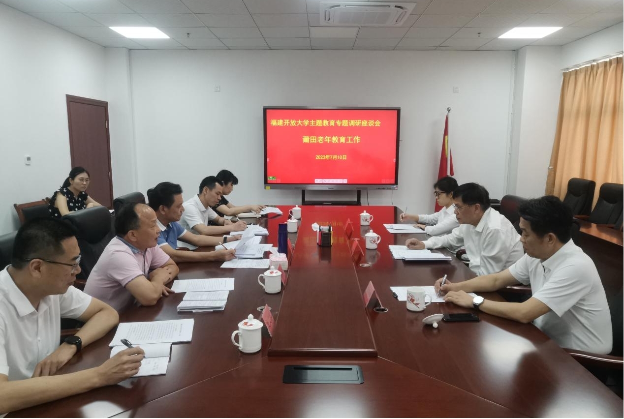 为切实增强主题教育实效,7月10日下午,福建开放大学在莆田开放大学召开主题教育专题调研会,福建省委主题教育第十三巡回指导组组长李宝银、福建开放大学校长吴国荣、莆田市人民政府副市长胡国防、莆田市教育局局长彭鲤芳等参会。
