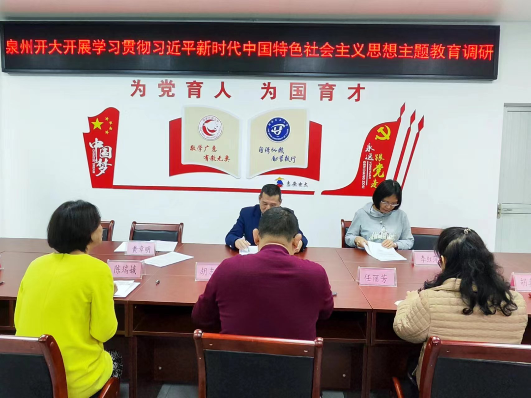 根据泉州开放大学主题教育调研工作方案安排,11月15日上午,副校长林春成带队赴惠安学院开展主题教育调研,重点围绕“提升泉州开放大学系统教学质量”开展调研,进一步听取意见建议。教务处主任李红萍等陪同调研。