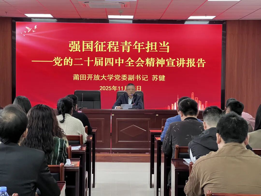 为深化思政教育实践内涵,引导学生骨干在文化传承与社会实践中坚定理想信念,11月15日,莆田开放大学举办“传承文脉、实践铸魂”优秀学生骨干思政教育实践活动开班仪式。校党委副书记苏健出席开班仪式,并以“强国征程、青年担当”为主题开展思政课,为全体学员筑牢思想根基,拉开了本次沉浸式实践教育的序幕。